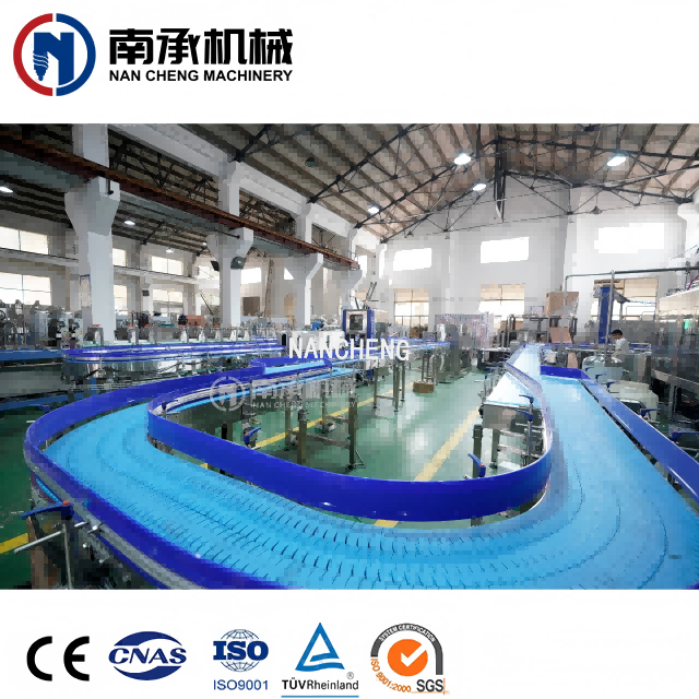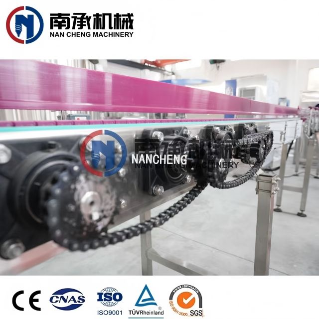 輸送系統(tǒng)配有潤(rùn)滑裝置,螺旋電機(jī),高速磁鏈板,水板,整條線使用壽命更長(zhǎng),瓶子輸送速度更快更平穩(wěn)。