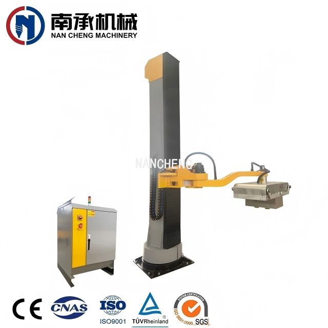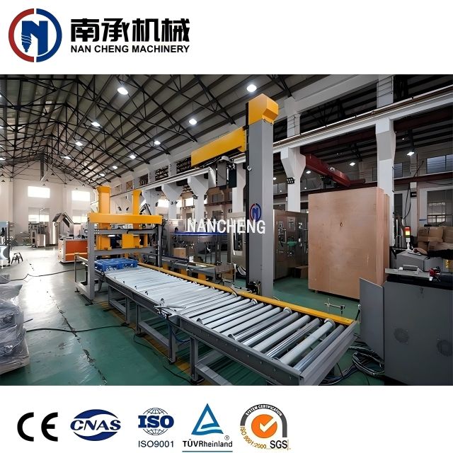 碼垛機(jī)是將已裝入容器的紙箱,按一定排列碼放在托盤、棧板(木質(zhì)、塑膠)上,進(jìn)行自動(dòng)堆碼,可堆碼多層,然后推出,便于叉車運(yùn)至倉(cāng)庫(kù)儲(chǔ)存。本設(shè)備采用PLC+觸摸屏控制,實(shí)現(xiàn)智能化操作管理,簡(jiǎn)便、易掌握??纱蟠蟮販p少勞動(dòng)力和降低勞動(dòng)強(qiáng)度。碼垛機(jī)是輸送機(jī)輸送來的料袋、紙箱或是其它包裝材料按照客戶工藝要求的工作方式自動(dòng)堆疊成垛,并將成垛的物料進(jìn)行輸送的設(shè)備。